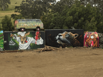This morning we did a beautiful drive towards Tahune Air Walk. Both sides of the road was beautiful with the different shades of green. The ferns are so big. The echidna, Arve River, rock wall and the blue gum. Trees made the drive quite spectacular. Got back to Geeveston and took photos of the sign of Geeveston forest town and the murals.