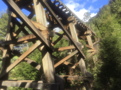 Got up early from Waratah to Queenstown to get on to the Hertiage Wilderness train that took us for a 5hr tripdown to Dubbil Barril and returned back to Queenstown. We saw the Kings River Gorge, the railway bridge at Dubbil Barril and also did some gold panning which Johnny was one of two people that were lucky to find a small piece of gold. Also at Dubbil Barril is where we saw the train operator turning the train around on the turn table manually . The railway bridge is an old wooden structure which has been there for quite a number of years.