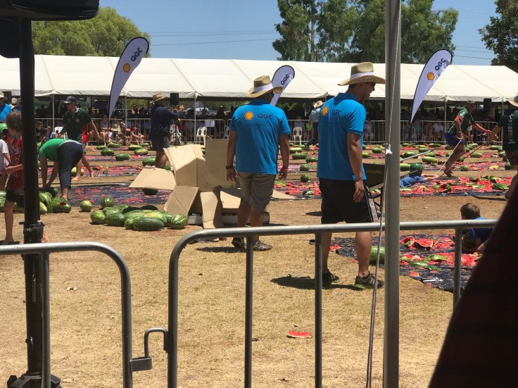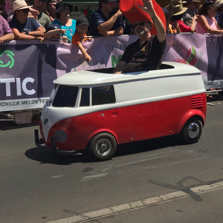 Arrived at the showgrounds set up the van and awning plus everything to do for s comfortable stay for the next 4 days while here at the festival. We set up our outdoor lights the everything was packed away because the wind was so severe. Help other campers with there awnings while they were out for dinner. We now have become acquaints. Went for a drive looking around Chinchilla. Wow it has grown since we were here along time ago. Went to the rodeo saw the bucking horses and bucking bulls. I did enjoy the ladies barrel races. Got a bus from the show grounds to the street which was better than walking. Saw different craft stall like they are at our festival. Then at 10.30 the festival was officially opened with the parade starting with the follow up of the sprint for cash. We then went to the school grounds to watch the melon activities but it was hard to see the games with the melons. With just s school oval and with thousands of people caused us not see to any of the games. We went back down when the sun had disappeared to watch the laser lights but as we went through the gate is finished. I was so disappointed. Went to McDonalds to get dinner to finish off our night. Our friends left on Sunday which they were heading to the Gold Coast. We left yesterday.